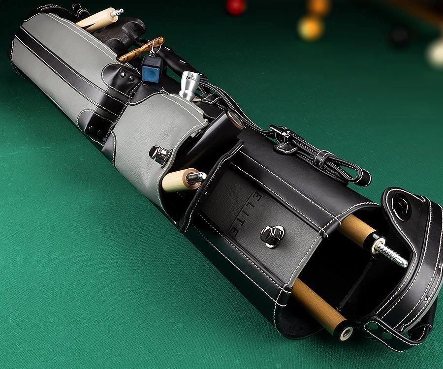 Made of black vinyl and white stitching with all black hardware this case looks sweet. It has carrying handle on the top and side and a shoulder strap.